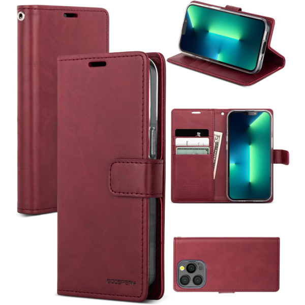 Double the protection with a durable PU leather exterior and flexible TPU inner case ensures your phone against drops and bumps. The inner case with raised lip technology protects the screen and rear camera against scratches while safely lift from flat surfaces. Made of premium PU leather, slim and sleek design adds classic look. It is constructed with 3 card slots & 1 side pocket inside the case and magnetic closure for easy to use. (The magnet does NOT affect the reception signal or any functions of the device.) Make your iPhone 13 Pro practical in style. Precise cutouts allow easy access to all ports, speakers & camera and simple snap-on shell installation. Slim and ergonomic design of Goospery iPhone 13 Pro case provides a nice grip and make it easy to hold your phone with ultimate comfortable feeling.Convert into a stand. Invisible kickstand will bring more convenience for movie-watching with multi-angle or hanging out with your new iPhone 13 Pro while protecting it.