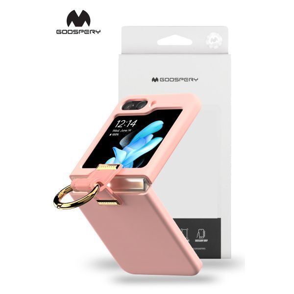 The Goospery Gold Ring Case for Samsung Galaxy Z Flip 5 offers stylish protection with a touch of elegance. The built-in gold ring enhances grip, prevents accidental drops, and doubles as a convenient stand for hands-free viewing.