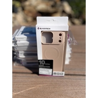 The BLACKTECH Soft Feeling Case with Soft Microfiber for the Apple iPhone 17 Pro Max in Pink Sand is a premium protective accessory designed for a slim profile and MagSafe compatibility. It features a silky-touch silicone exterior and a protective inner lining to prevent scratches.