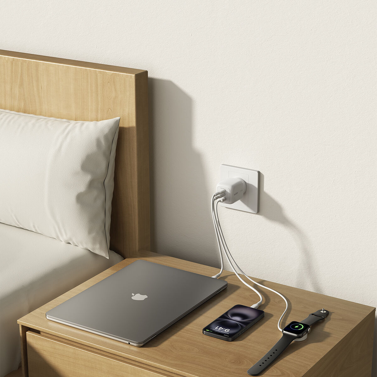 Enjoy on-the-go charging with dual USB-C and single USB-A ports, Fast Charge your iPhone 16 Pro from 0-50 Percent in 27 minutes and Samsung S25 from 0-50 percent in 26 mins, USB-C PD technology charges iPhone 16 Pro from 0-50 percent in 27 minutes whhen p