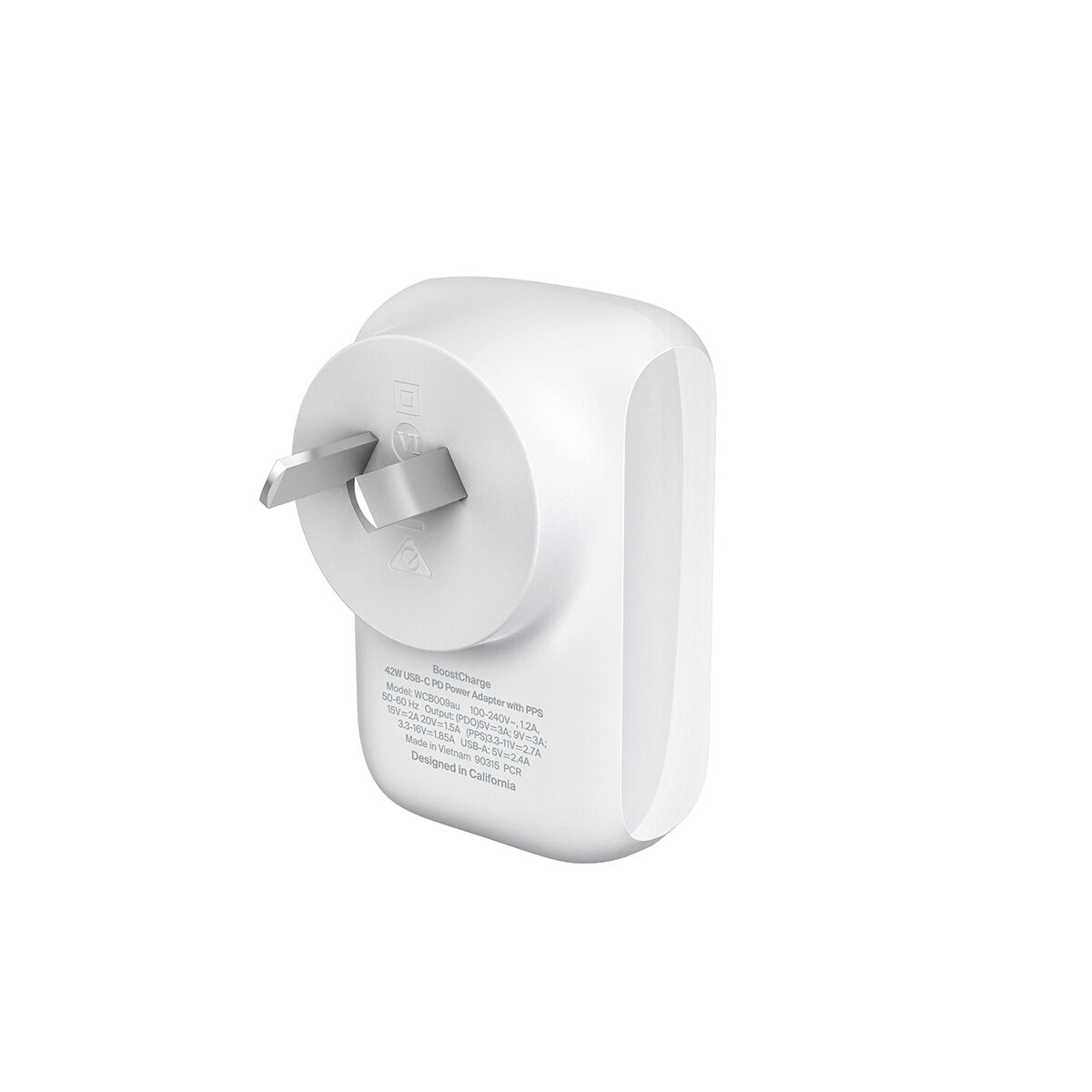 Fast charge an iPhone or Samsung smartphone while you charge another device at the same time with our Dual Wall Charger 42W. Dual ports include a 30W USB-C port and a 12W USB-A port. It?s USB-C PD 3.0 certified to deliver fast charging of 0-50% in 211 minutes for iPhone? or 0-50% in 26 minutes for Samsung.