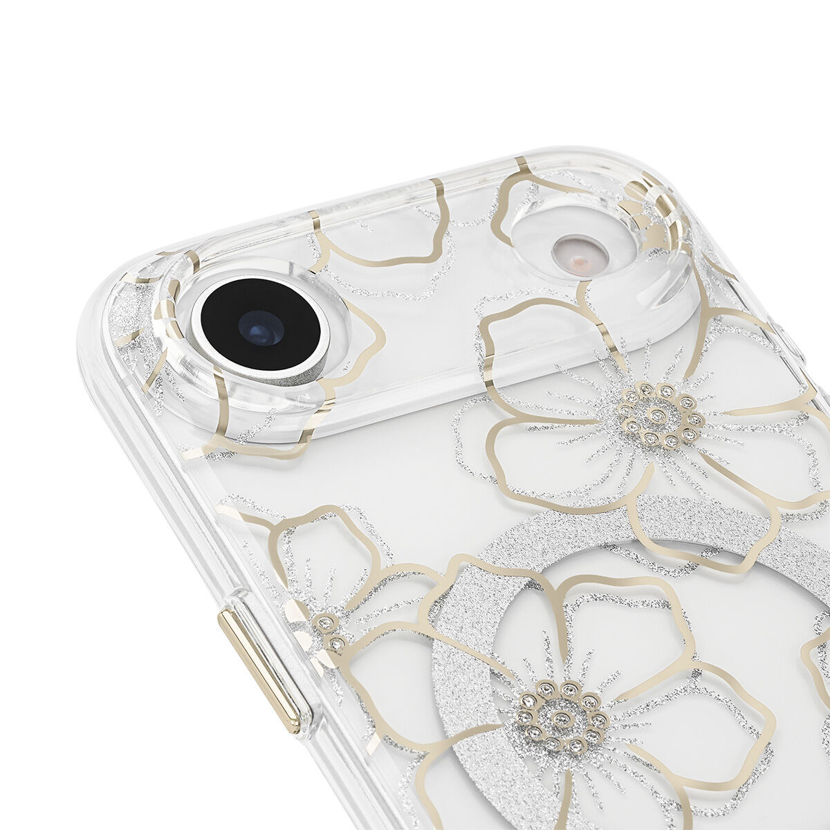Beautiful florals are in the palm of your hand with the Floral Gems MagSafe Phone Case for the new iPhone. This classic case stands out with a shimmering floral design and gemstone accents, while strong built-in magnets allow for easy MagSafe accessoorising and charging. We know how much you love your phone, so feel confident knowing it?s safe with 12-foot drop protection.