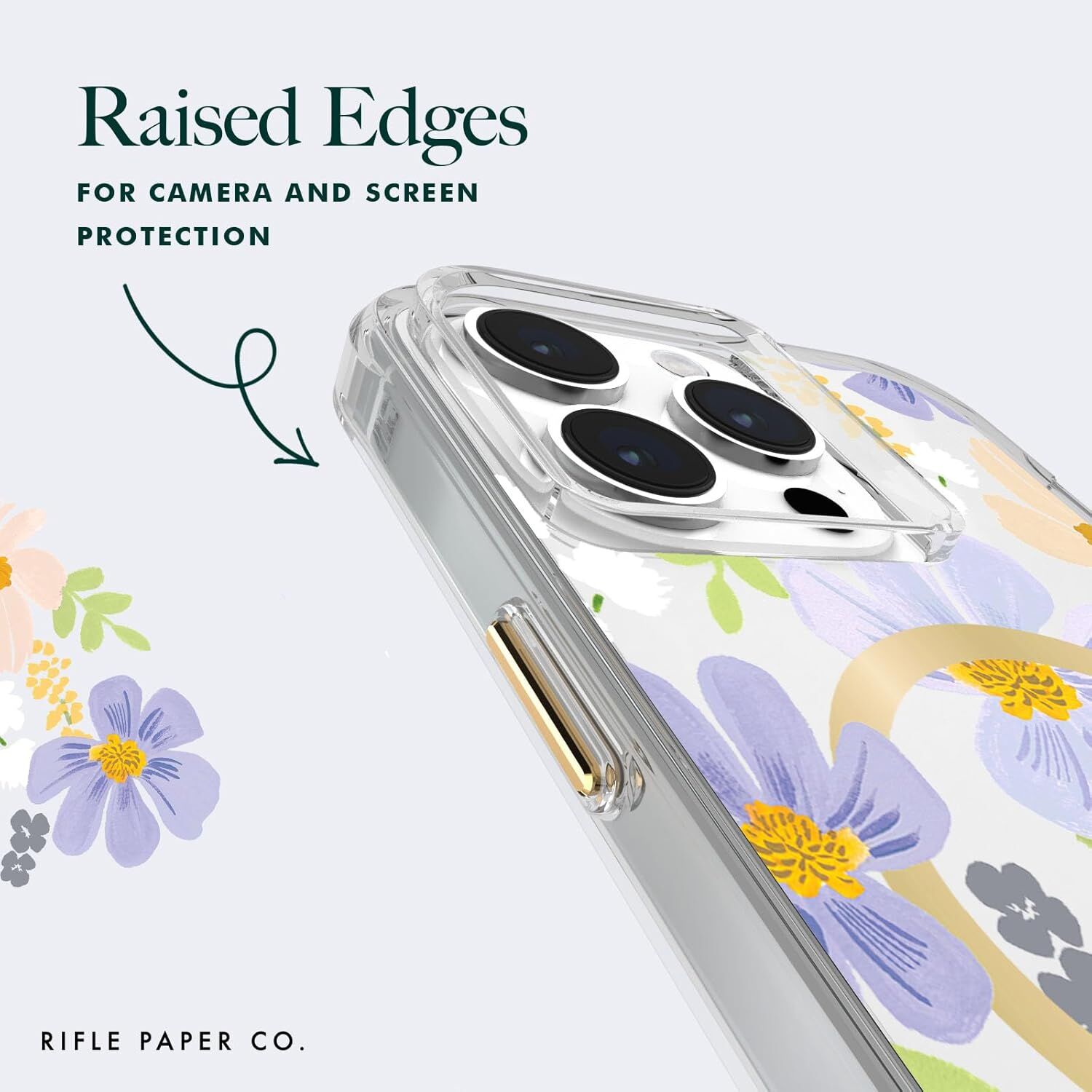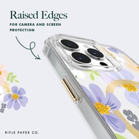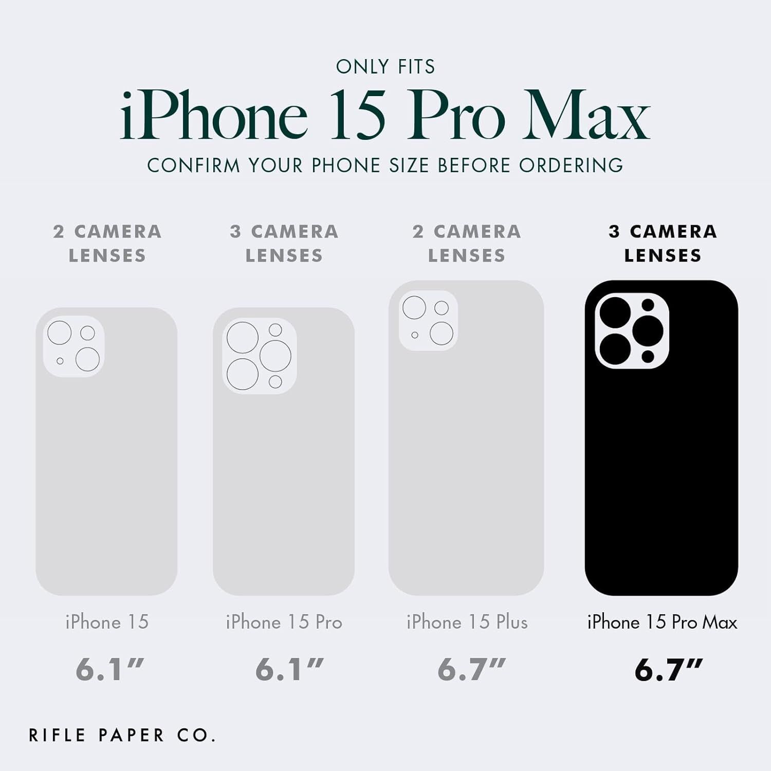 Made with Rifle Paper Co.'s vibrant floral pattern, This luxury case for iPhone 15 Pro Max provides both style and protection; It utilizes a unique printing technique and special ink to prevent the design from rubbing, fading, or smudging.