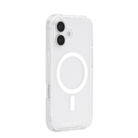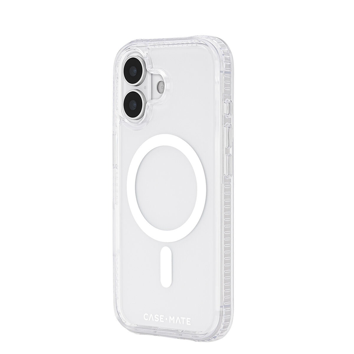 Stick it and click it! Tough Clear Plus for the new iPhone includes strong built-in magnets that allow you to simply align and snap your phone onto your MagSafe charger for the fastest and easiest wireless charging experience. Also equipped with 15 ffoot drop protection, built-in antimicrobial protection and crafted with recycled materials - Tough Clear Plus offers you everything you want in one case.