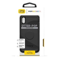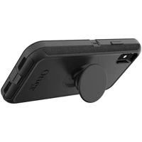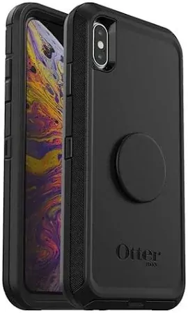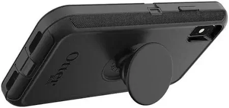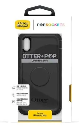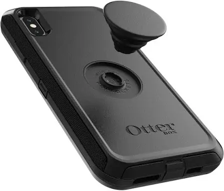 The OtterBox Apple iPhone Xs Max Otter + Pop Defender Series Case - Black is a multi-layered, heavy-duty phone case with an integrated PopGrip. It is specifically designed for the iPhone XS Max and provides enhanced protection from drops, dust, and bumps.